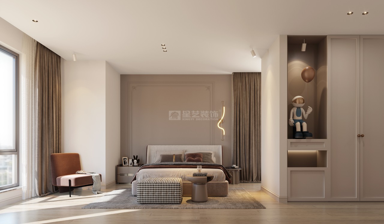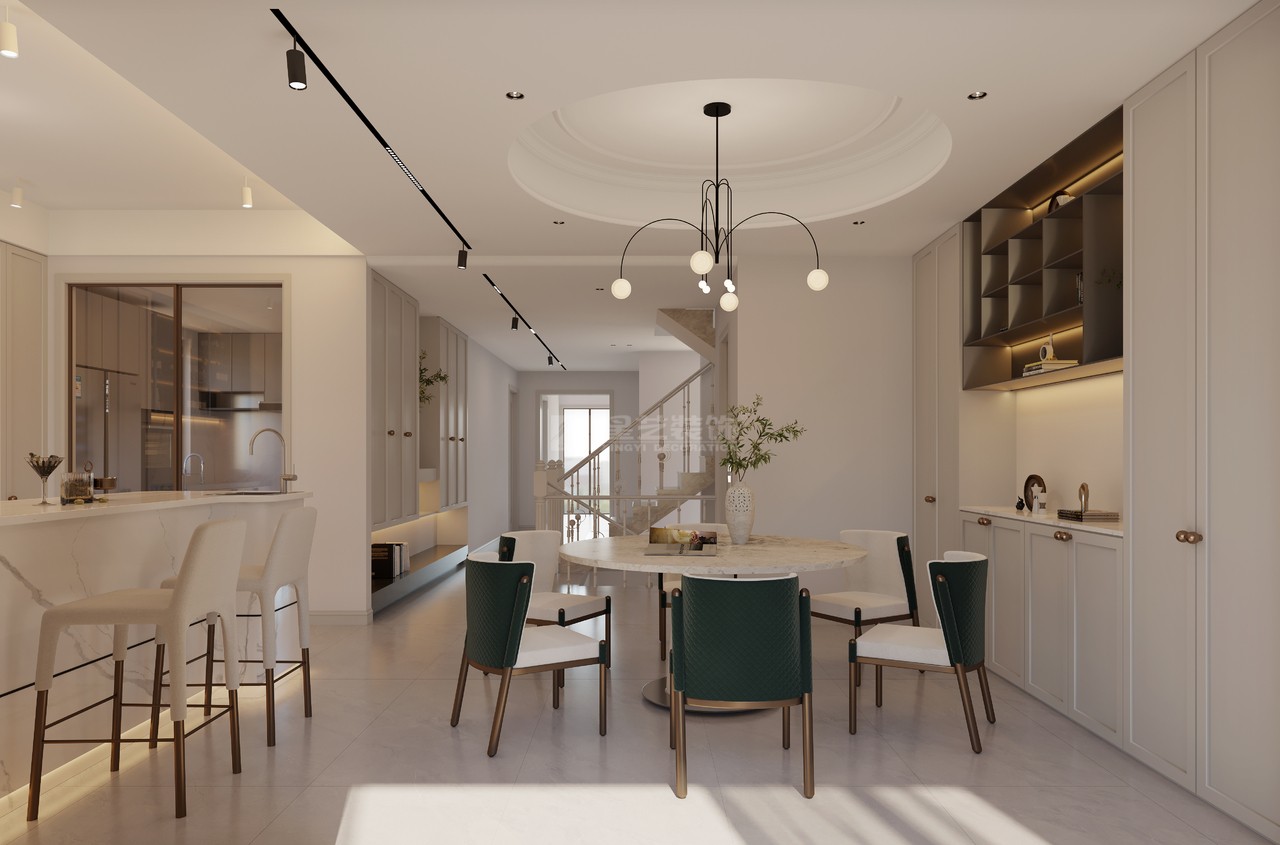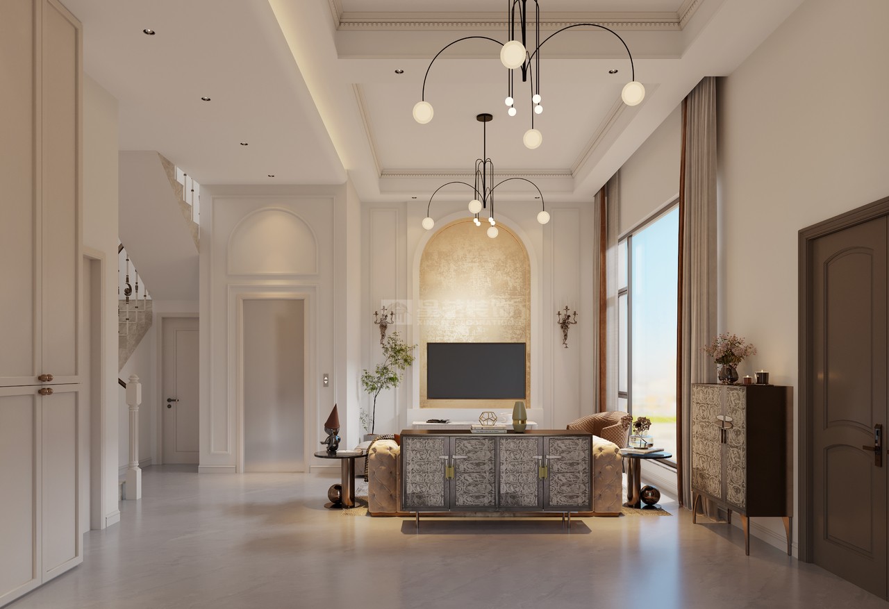 設計理念:本案設計結合法式精神與現代生活需求,設計師運用法式美學構造業主向往的生活品質空間。沒有繁冗多余的色調和修飾,自然詩意和高雅是生活的主題,優雅、時尚、高端的生活在此被演繹得像詩一樣優美。